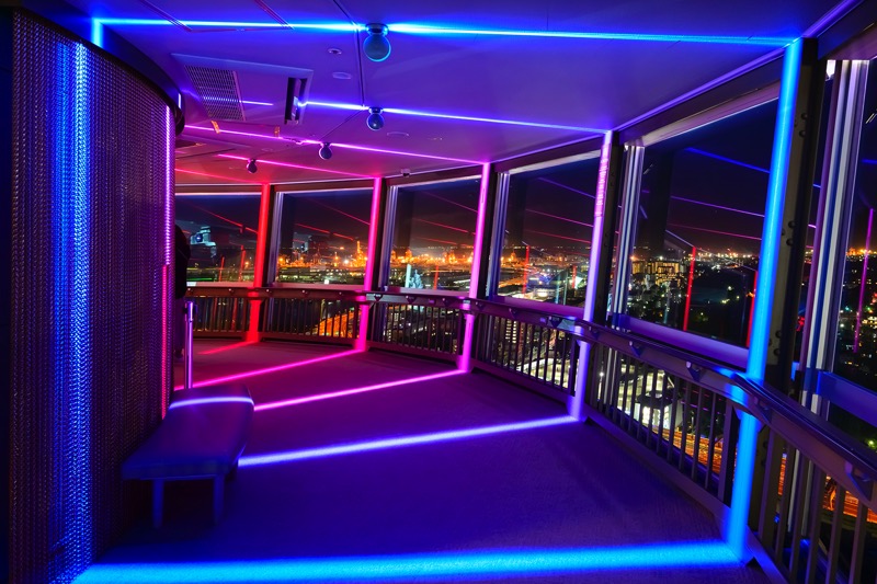 1961年(昭和36年)、横浜開港100周年を記念して建設された横浜市のシンボル。鉄塔は地上106m、展望フロアは約94mに位置する。元々は灯台としての機能を備えた構造で、開業当時は世界一高い灯台としてギネスにも認定されたが2008年に灯台機能は停止。その後は市の整備を経て2009年に再開し、2022年には「NATURE & FUTURE」をテーマに全面リニューアルされた。館内低層部は商業空間をメインに1階はカフェやショップ、2階は写真集やレコードを備えた旅のライブラリー&コミュニティラウンジが配置。4階は夜景と共に食事が楽しめるレストラン&バーを兼ね備えている。展望フロアは29階・30階の2層構造で夜間専用のチケットもあり、来場者の目的に応じたスタイルで営業している。360度ぐるりと見渡せる展望フロアでは、みなとみらいから眼下の山下公園や氷川丸、さらにはオレンジ色に輝く本牧埠頭から横浜ベイブリッジまで、横浜を象徴する夜景の数々が楽しめる。直下の地上が覗けるスリル感満載のガラス張りの床演出や、様々なアート作品を夜景に重ねて投影するメディアアートギャラリーなど、夜景鑑賞を飽きさせない工夫もある。一方、ライトアップされた外観は時期により宝石のような輝きを演出。山下公園や中華街からもアクセスが良く、港の見える丘公園よりも高い位置から横浜港が楽しめるスポットとして貴重だ。